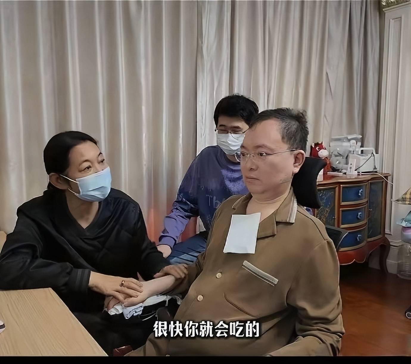 照片里的虎子,身高瞩目,体型壮实,戴着黑框眼镜,一副憨厚沉稳的模样。在探访过程中,他没有丝毫抢镜,只是安静地跟在母亲身边,主动帮忙打点细节,体贴入微的举止与他的“巨无霸”外形形成反差萌。难怪连蔡磊团队的工作人员都忍不住夸赞。