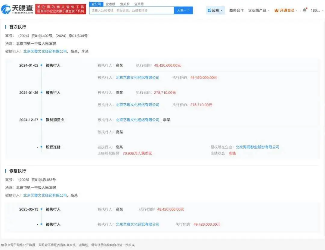 根据当时的公开报道,投资方在起诉过程中追偿损失,由于高云翔名下公司与董璇名下公司之间存在关联的法律关系,董璇作为连带责任方被列入被执行名单。